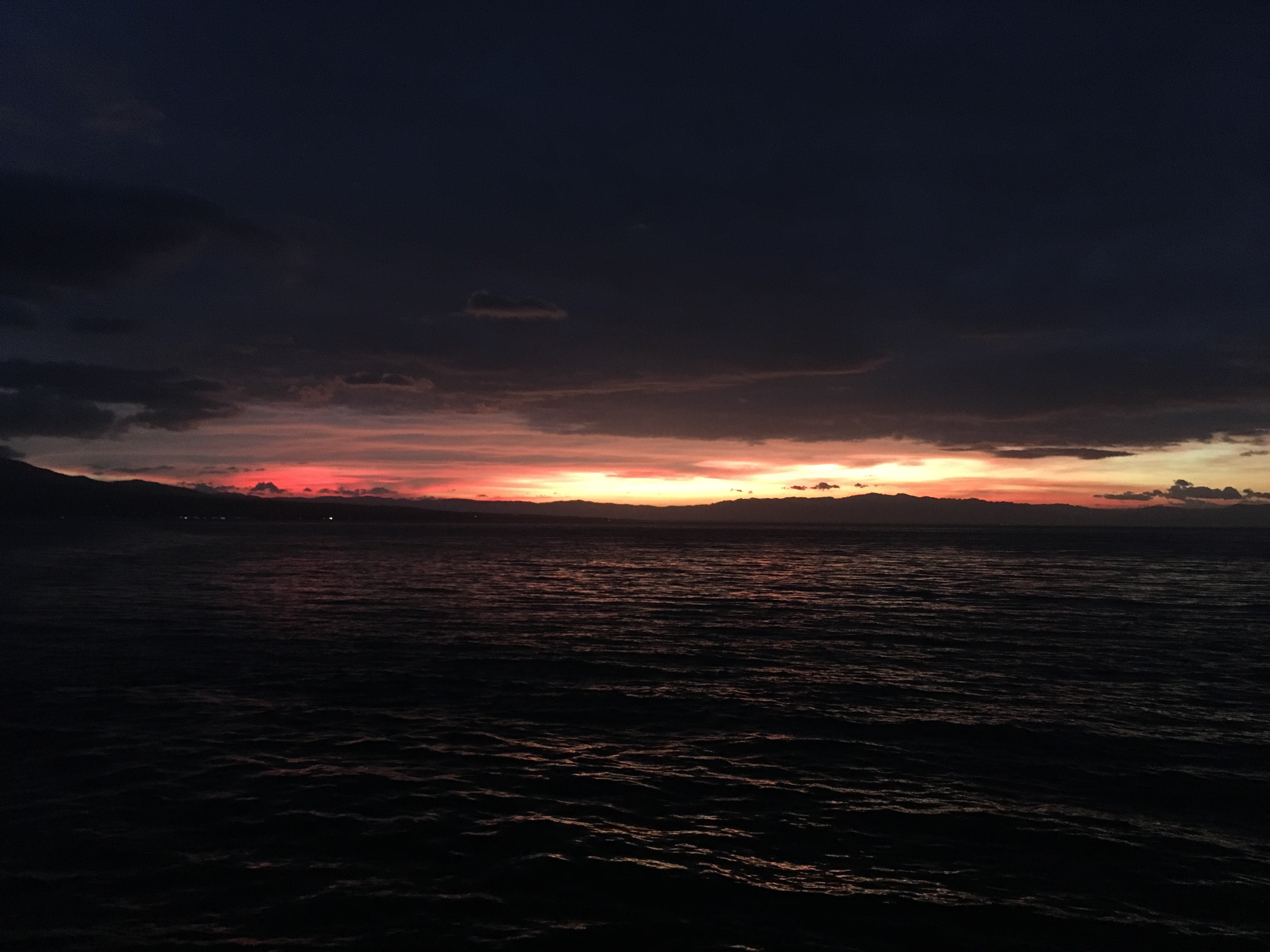 Võtsime bussi, maksime pileti eest alla euro ja kulgesime taas mingi poolteist tundi ja jõudsime sadamasse. Praam väljus päikseloojangul ja viis meid siis juba järgmisele saarele. Praamide/laevade/paatide väljumiskellaaegades ei tasu kunagi kindel olla ega ka sõidule kuluvas ajas, seega tasub varuda aega ja kannatust.. :)) Sõit ise maksis 30 pesot ja vaade oli lihtsalt suurepärane..